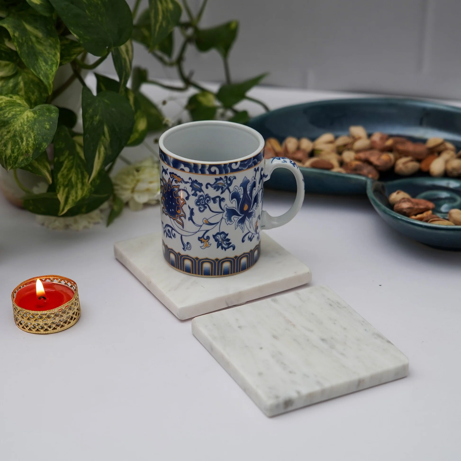 Enhance your dining experience with our elegant White Marble Plain Coaster, perfect for tea, coffee, and water glasses. This versatile trivets pad not only protects your dining table but also adds a touch of sophistication to your office table. Ideal for kitchen use, these coasters are designed for tea cups, coffee cups, or mugs, ensuring your surfaces remain spotless. With their timeless design, they blend seamlessly into any decor while providing reliable protection against spills. Elevate your beverage enjoyment with these stylish drinking glass coasters, making every sip a pleasure without the worry of unsightly marks on your furniture.